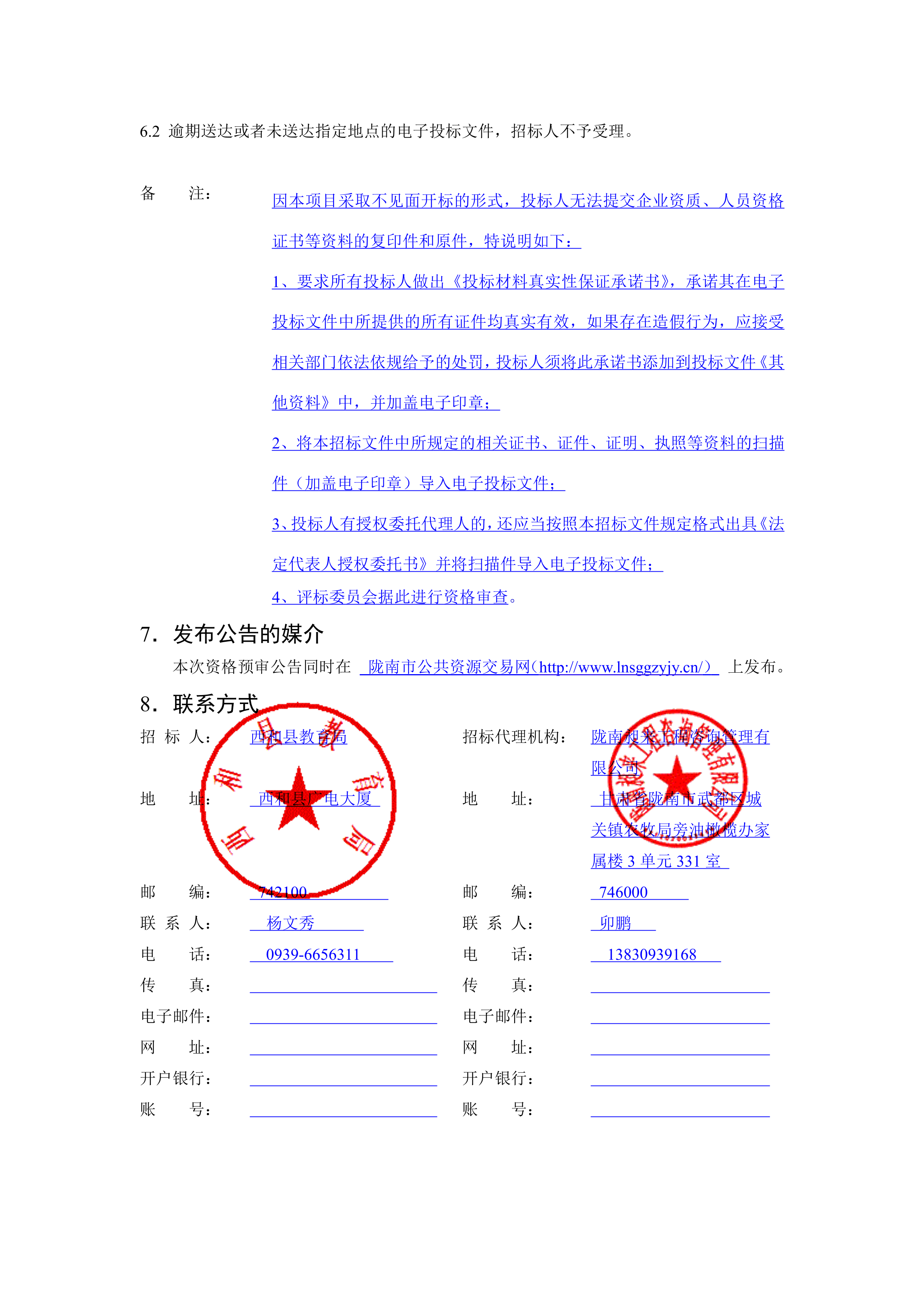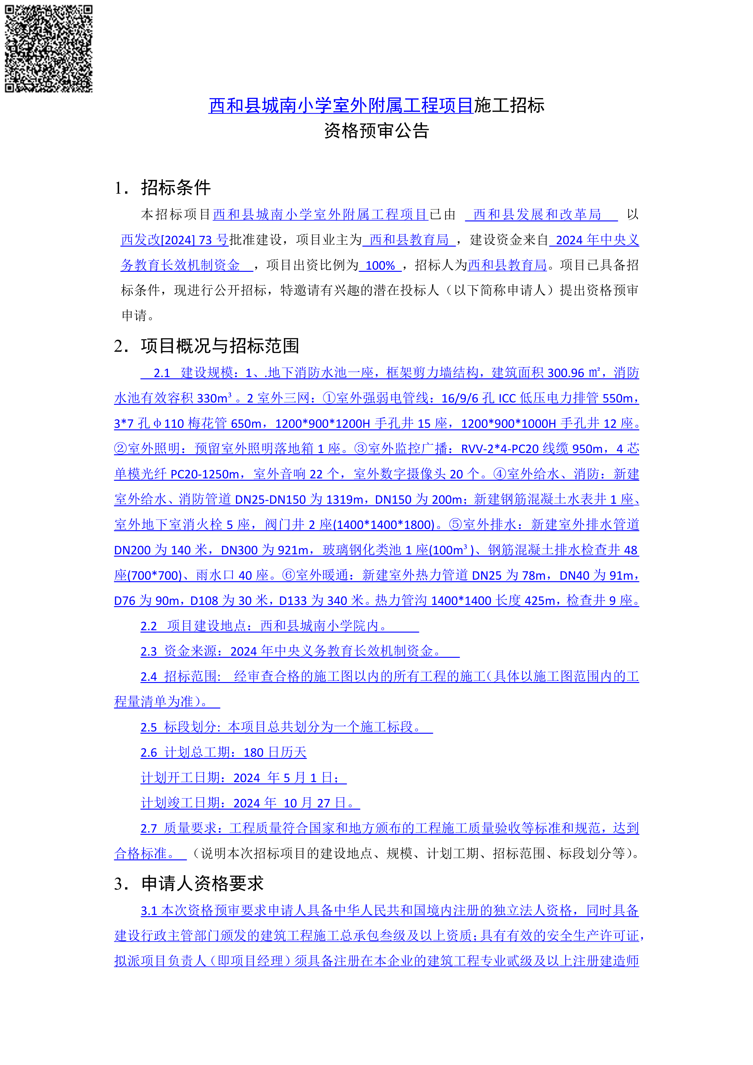 西和县城南小学室外附属工程项目施工招标资格预审公告
